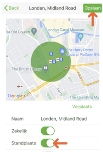 8: In the app, go to ‘Locations’ and press the location that should become your permanent worklocation. In the screen you can check this location as Worklocation (in dutch this is called Standplaats).