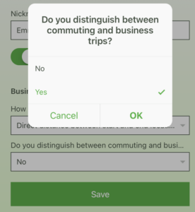 7: To distinguish between commuting and business trips, go to Settings in the app. Below the ‘Business distance calculation’ bar you will see ‘Distinction between commuting and business trips’. Check Yes to distinguish between commuting and business trips. Below this, under ‘Minimum commuting kilometres’, you can set yourself how many kilometres you always want to count as commuting.