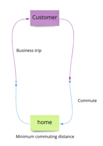 2: If you travel from your home location to a customer, via your workplace, and you travel directly back home from that customer, the kilometres to your workplace will count as commuter traffic. The kilometres of that journey to the customer will count as business kilometres.