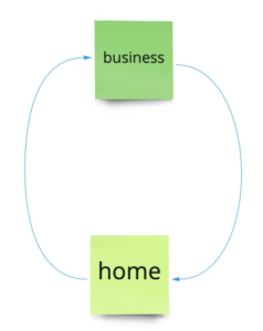 Image 1: Travelling from your home location to your business location and back again: The kilometres you have traveled are stored in your declaration list as business kilometres.