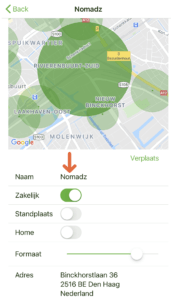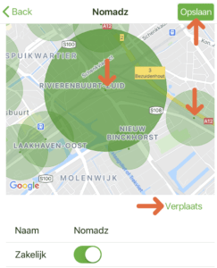 Thrivey maakt een inschatting van de locaties waar jij naartoe reist. Het kan zijn dat de positie niet helemaal correct is. Wellicht gaat het om het huis ernaast. Of gaat het over een groot terrein en wil je dat de locatie vanuit het midden van dat terrein herkend wordt. Druk in de locatie pagina op verplaats en druk daarna op de juiste plek op de kaart. Je zal zien dat de cirkel verplaatst. Als de nieuwe positie op de kaart goed is, druk dan op opslaan.