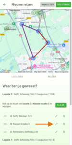 Het is mogelijk om locaties van je reis te verwijderen. Druk dan op de prullenbak.