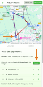 Druk je op opslaan dan worden alle reizen opgeslagen. Hier zie je dus ook dat er een route is toegevoegd.