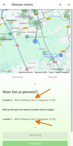Je gaat nu de locaties waar je naar toe bent gegaan aangeven. Dat doe je door op de kaart te drukken. Je kan op een locatie drukken waar je eerder geweest bent of op een locatie op de kaart.