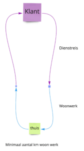 2: Ga je vanuit huis via je standplaats door naar een klant en reis je vanaf de klant direct weer terug naar huis, dan gelden de kilometers naar je standplaats als woon-werkverkeer. De kilometers die je naar de klant hebt gemaakt tellen als dienstreis.